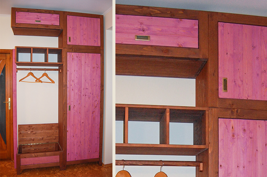 Beépített előszoba szekrény borovi fenyőből