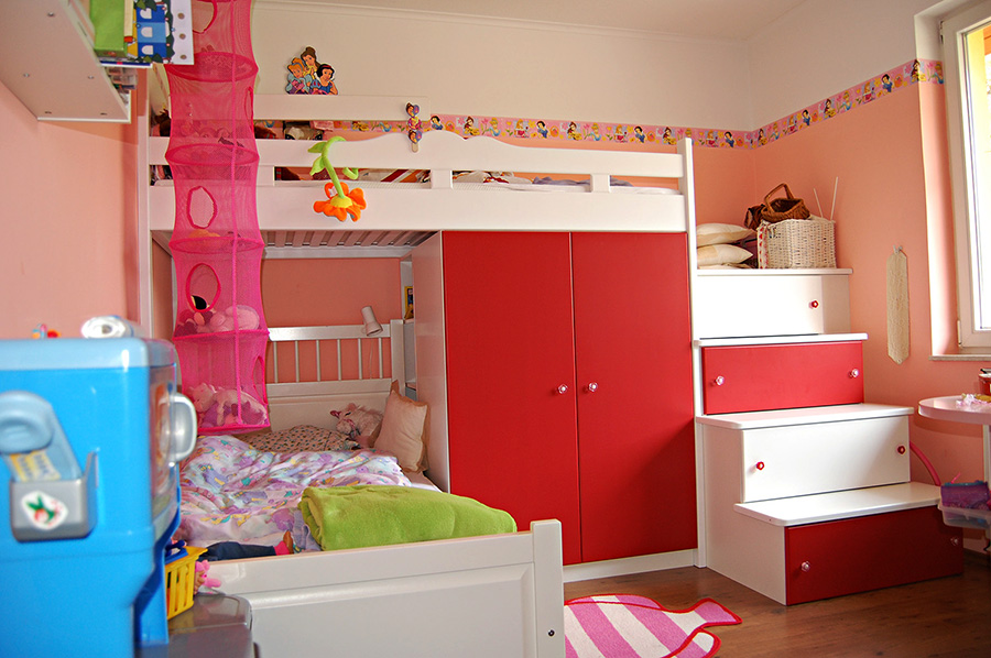 Gyerekszoba bútor emeletes ággyal festett felületben