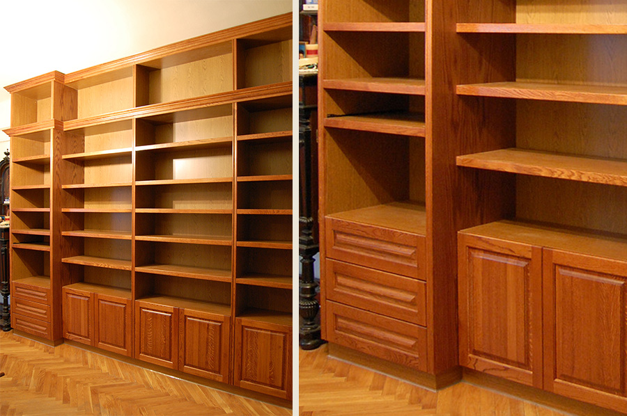 Könyves szekrény tölgyfából és laminált bútorlap belső felülettel
