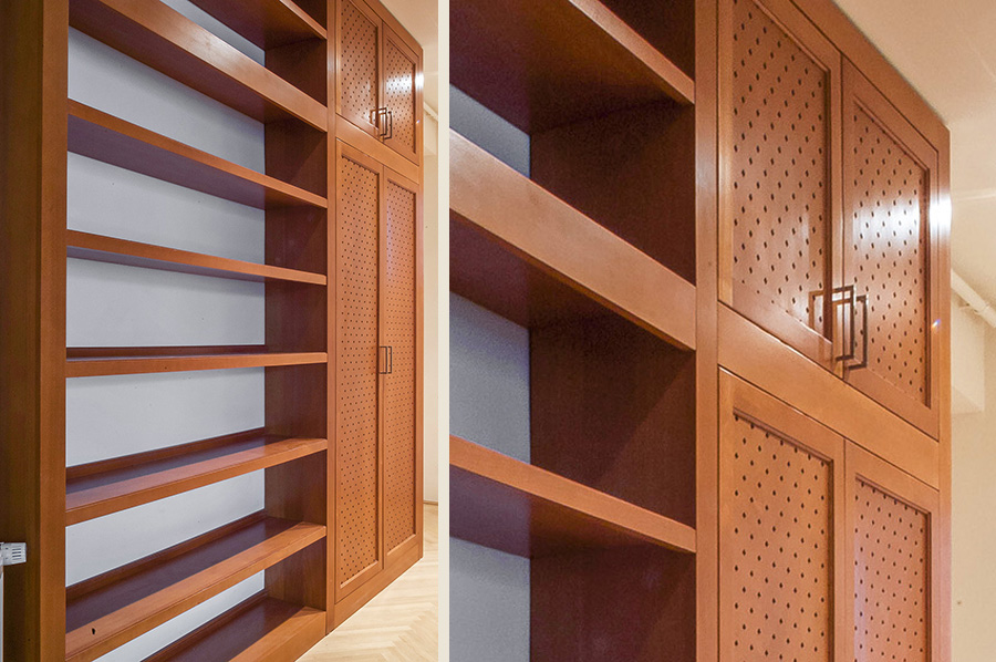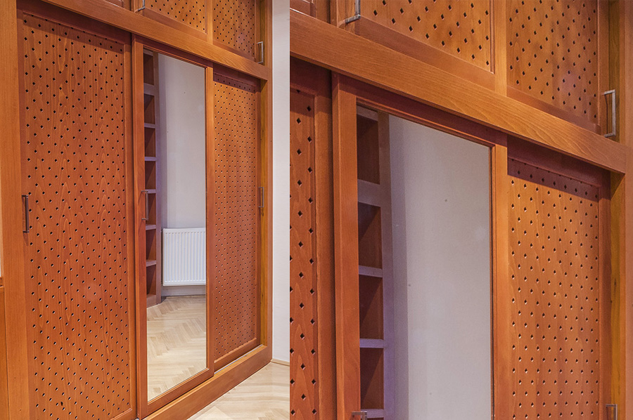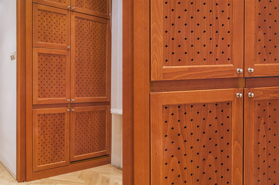 Perforált lemezes bútorajtó bükkfából