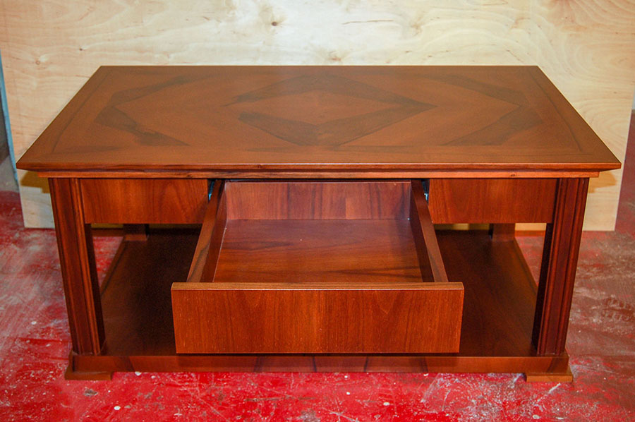 A vastag oldalak és asztallap masszív hatást kölcsönöz a bútornak
