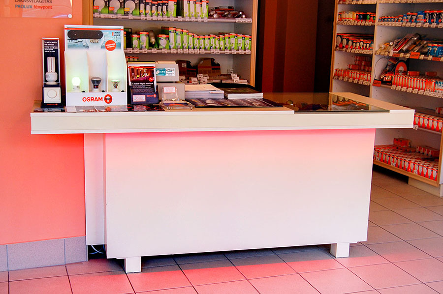 Prolux lámpabolt eladó pultja, természetesen beépített LED világítással