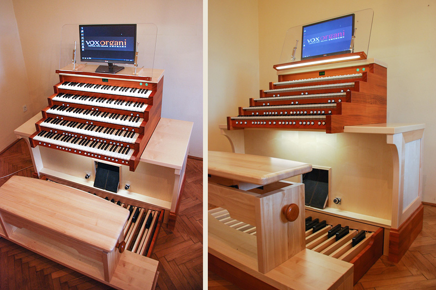 A Vox Organi nevű cég megbízásából foglalkozunk elektromos orgona játszóasztalának elkészítésével is