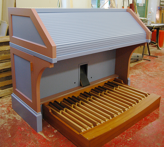 A Vox Organi nevű cég megbízásából foglalkozunk elektromos orgona játszóasztalának elkészítésével is