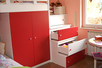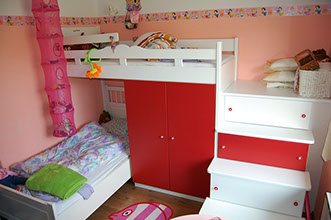Gyerekszoba bútor emeletes ággyal festett felületben