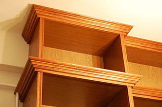 Könyves szekrény tölgyfából és laminált bútorlap belső felülettel