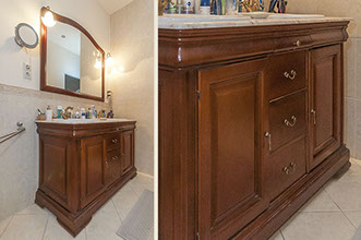 Bükkfából készített fürdőszoba szekrény öreg cseresznyére pácolva