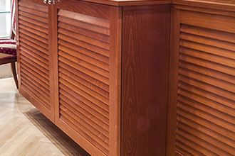 Perforált lemezes bútorajtó bükkfából