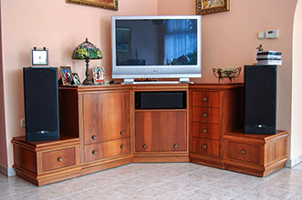 Egymástó függetlenül mozgatható diófa furnérral készített média sarok