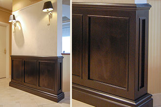Rezidencia fogadó termének oszlop burkolata faragott és esztergált díszítő elemekkel, tölgyfából